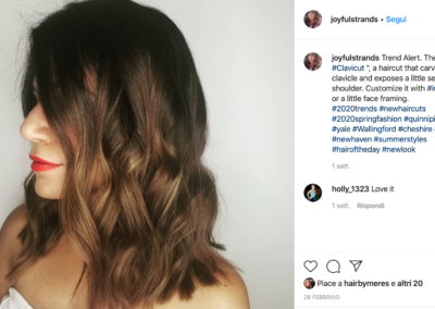 Si tratta del caro taglio alle clavicole, quindi siamo nelle lunghezze medie, che ormai sappiamo essere il trend assoluto del 2020, che permettono ancora di raccogliere i capelli con una coda ma rendono evidente che si è data una rinfrescata al look.