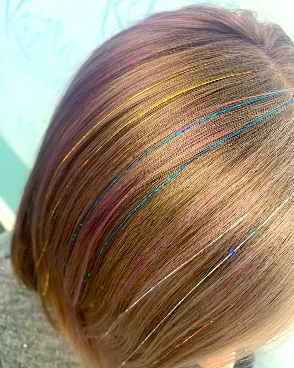 I Tinsler Hair sono piccoli fili colorati applicati fra i capelli che danno alla chioma riflessi iridescenti e sono perfetti per illuminare questo Capodanno 2021… o almeno quello che ne resta!