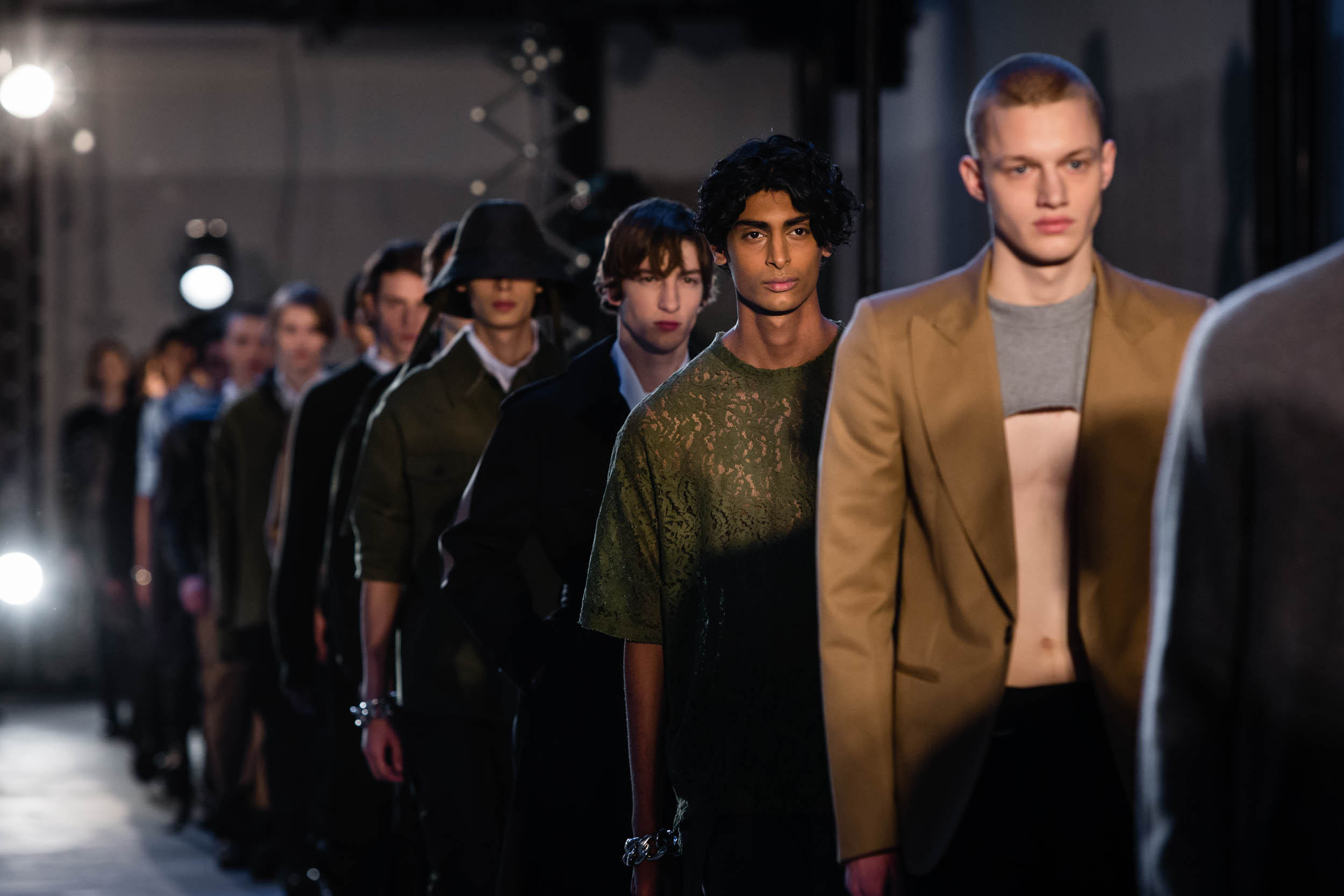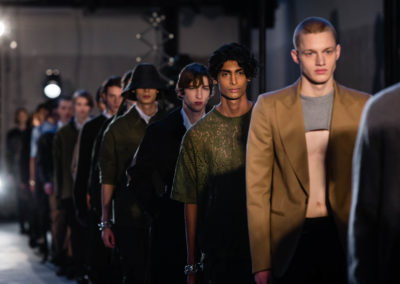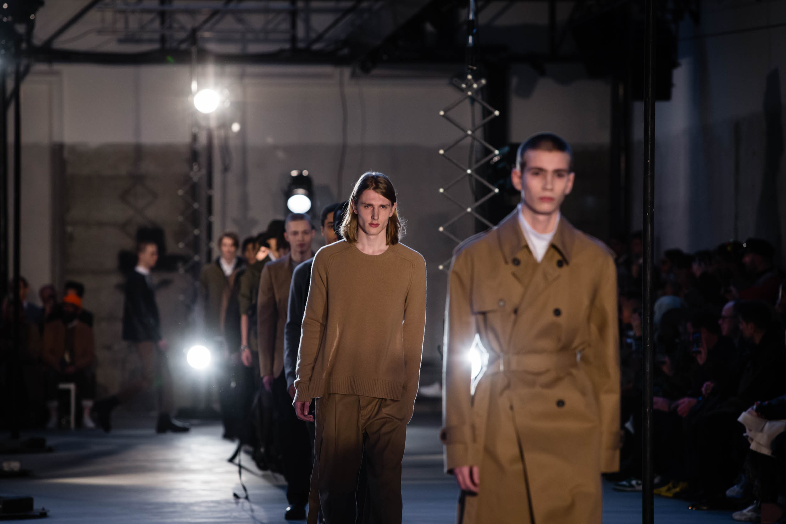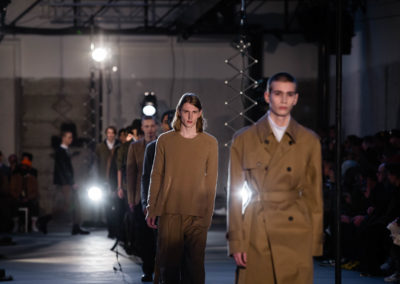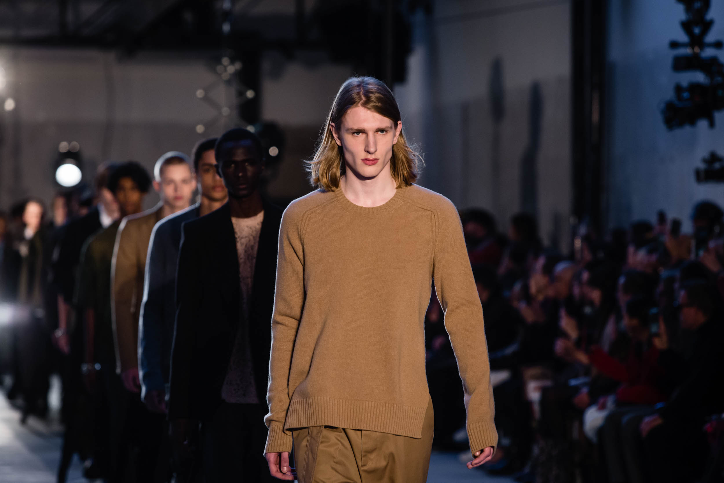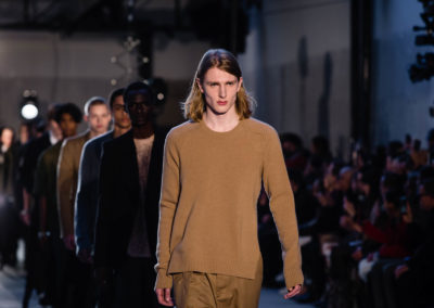 La collezione Fall Winter 2020 uomo esplora nuovi modi di vestire, liberi da preconcetti di genere o di orientamento sessuale. Alessandro Dall’acqua, direttore creativo del brand, ha esplorato una fisicità maschile nuova, elegante e fatta di forme ibride. Sulla passerella vediamo quindi sfilare classici trench color cammello con stampe tone-on-tone, maglioni oversize che lasciano la schiena scoperta con coloratissime righe o fantasie animalier e camicie con dei dettagli a traforo ottenuti con il laser. I look sono puliti e alternano uno stile più classico a felpe e maglioni militari, riuscendo a bypassare la filosofia dello streetwear.