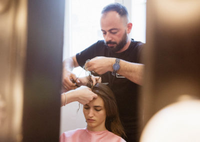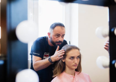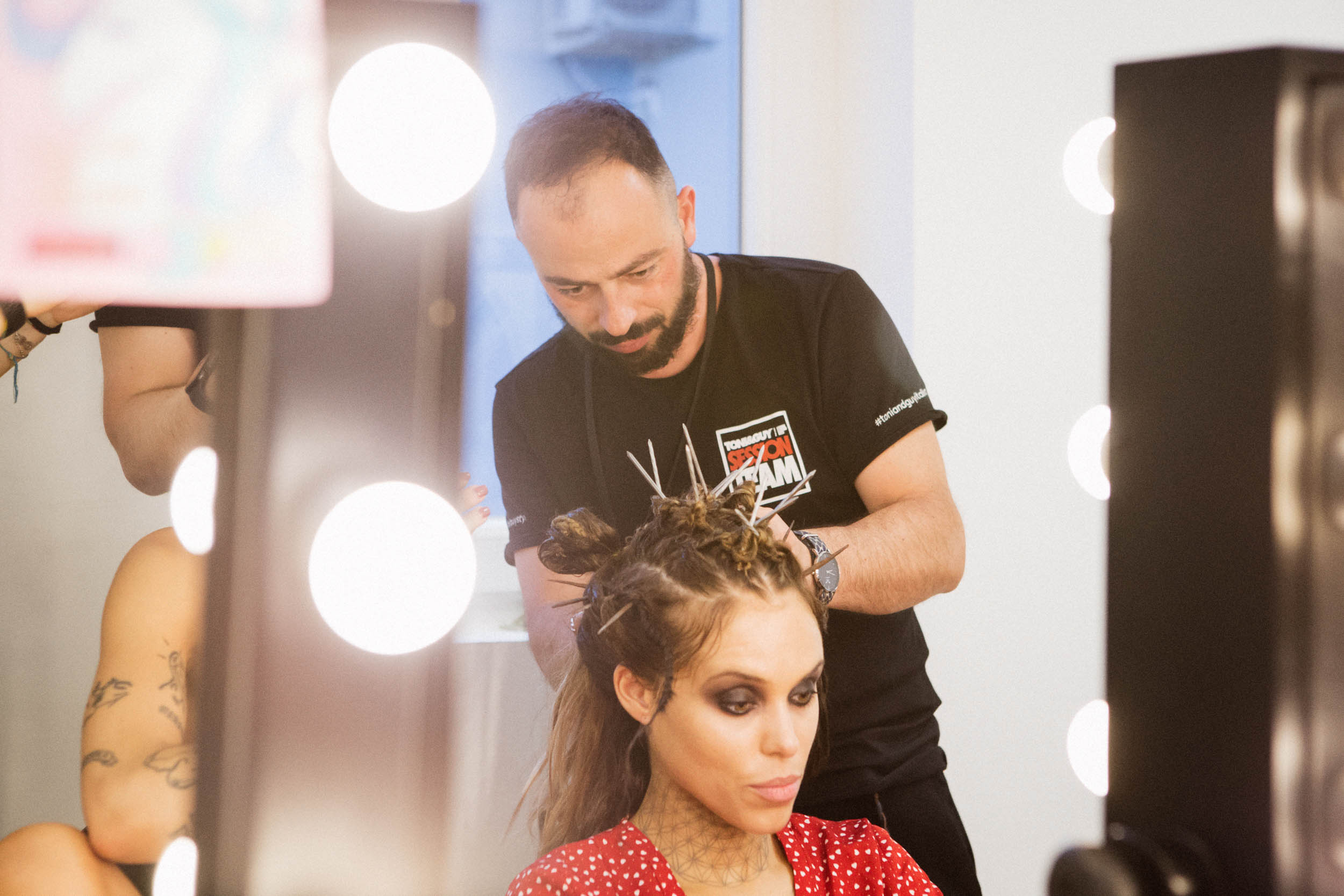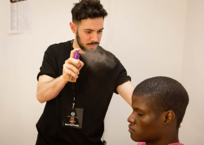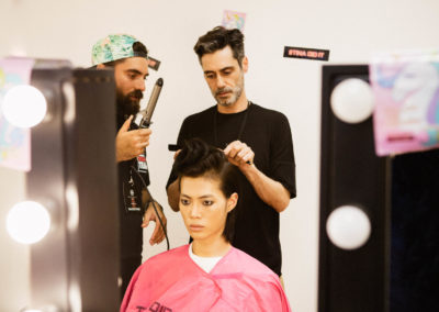 Per quanto riguarda l’uomo, un look si è ispirato al personaggio di Johnny Depp, nel film Don’t Cry: applicando la label.m Extra Strong Mousse, i capelli sono stati portati tutti indietro, per poi essere lavorati con il ferro nella parte superiore, per dare alla chioma molto bounce ed un’altezza esagerata.