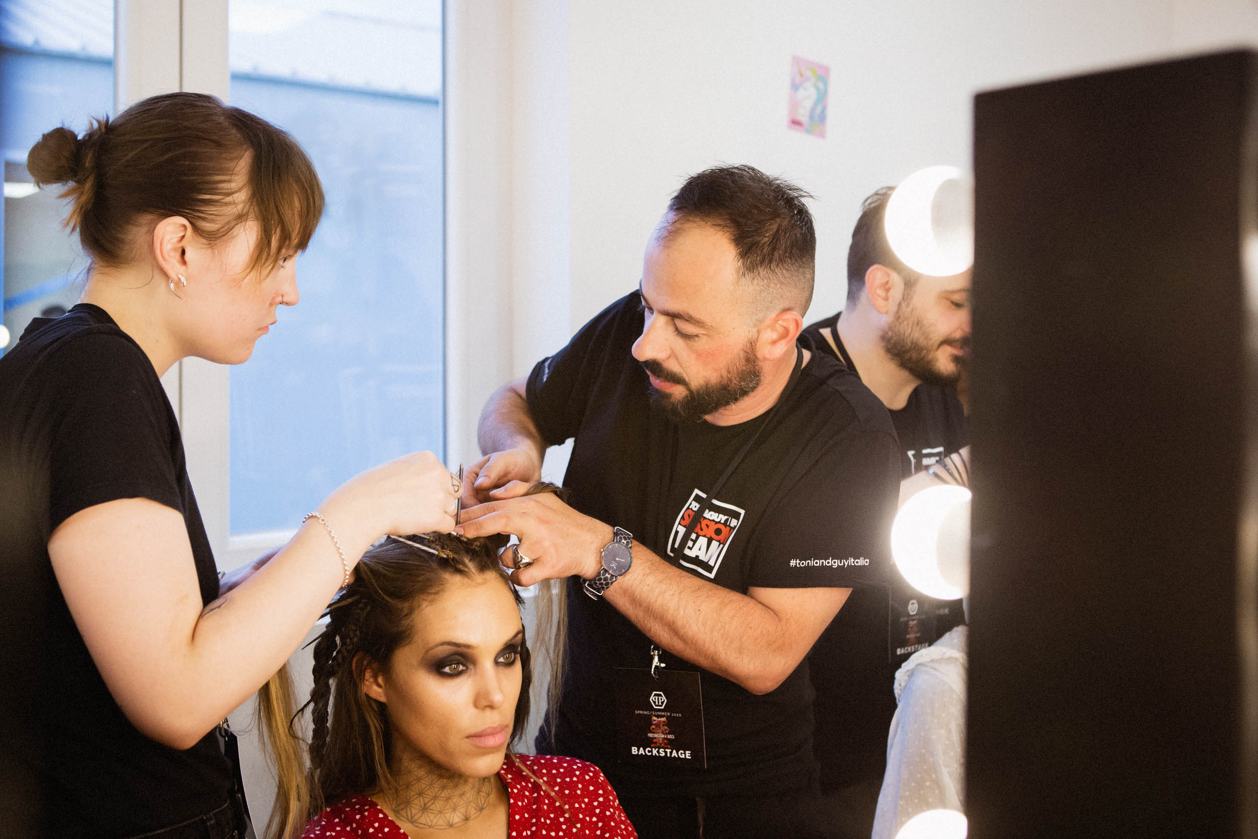 Un mood super rock ha ispirato il team artistico di Toni&Guy Italia, diretto da Ryan David Concannon, che ha realizzato gli hairstyle dello show di Philipp Plein a Milano in occasione della settimana Moda Uomo Primavera/Estate 2020.