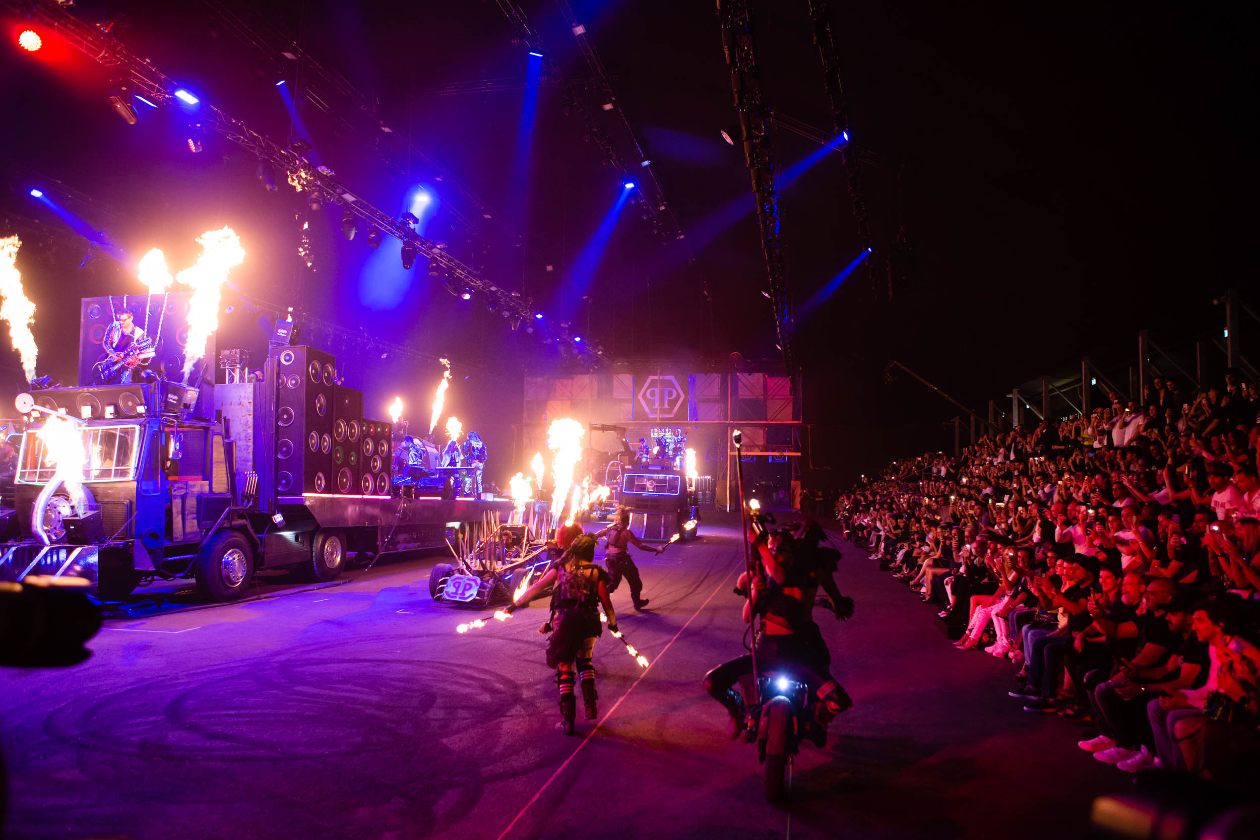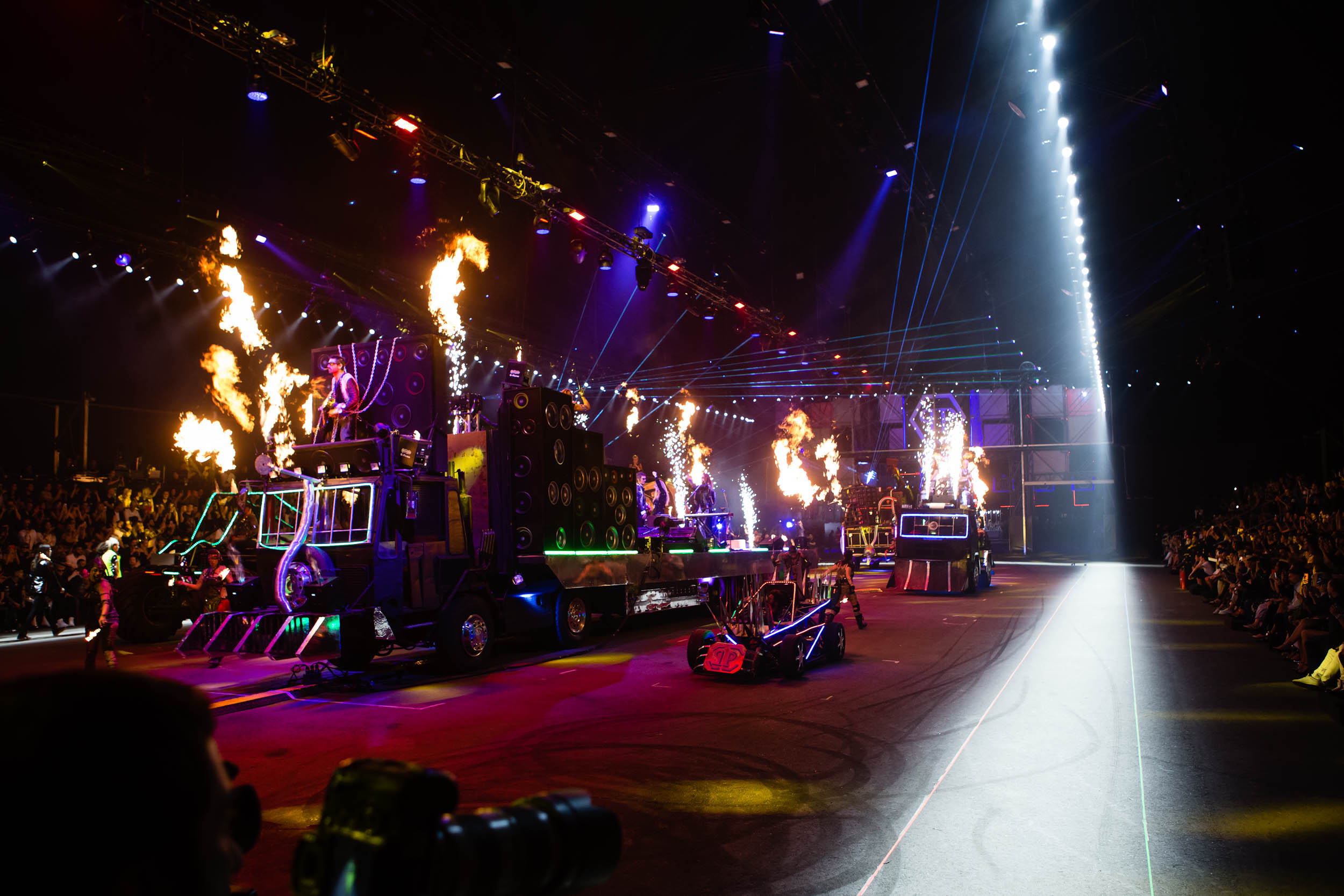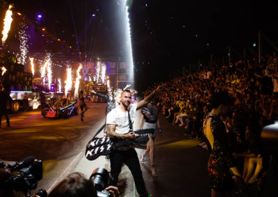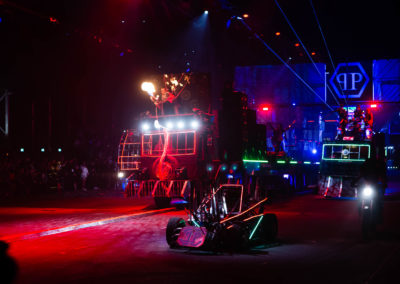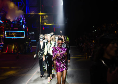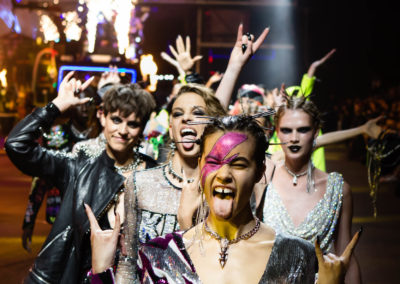 Lo show celebra in generale il mondo del rock e degli anni ’80, esibendo capi color fluo e oversize, fasce in testa, motivi metallici e stampe multi-color. Tutto – dai dettagli metallici alle felpe con cappuccio, fino ad arrivare agli stivali – trasmette un feeling rock’n’roll.
