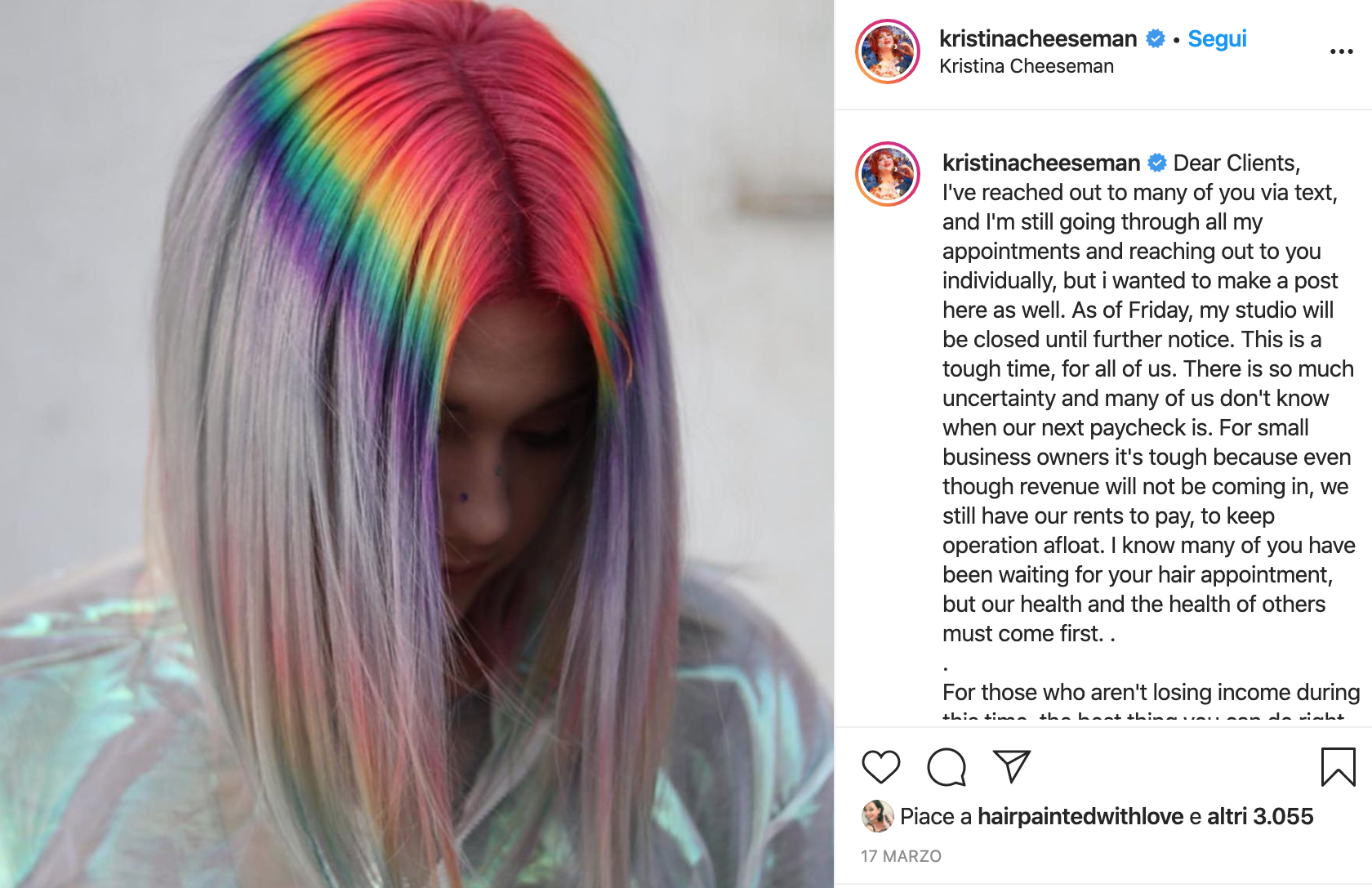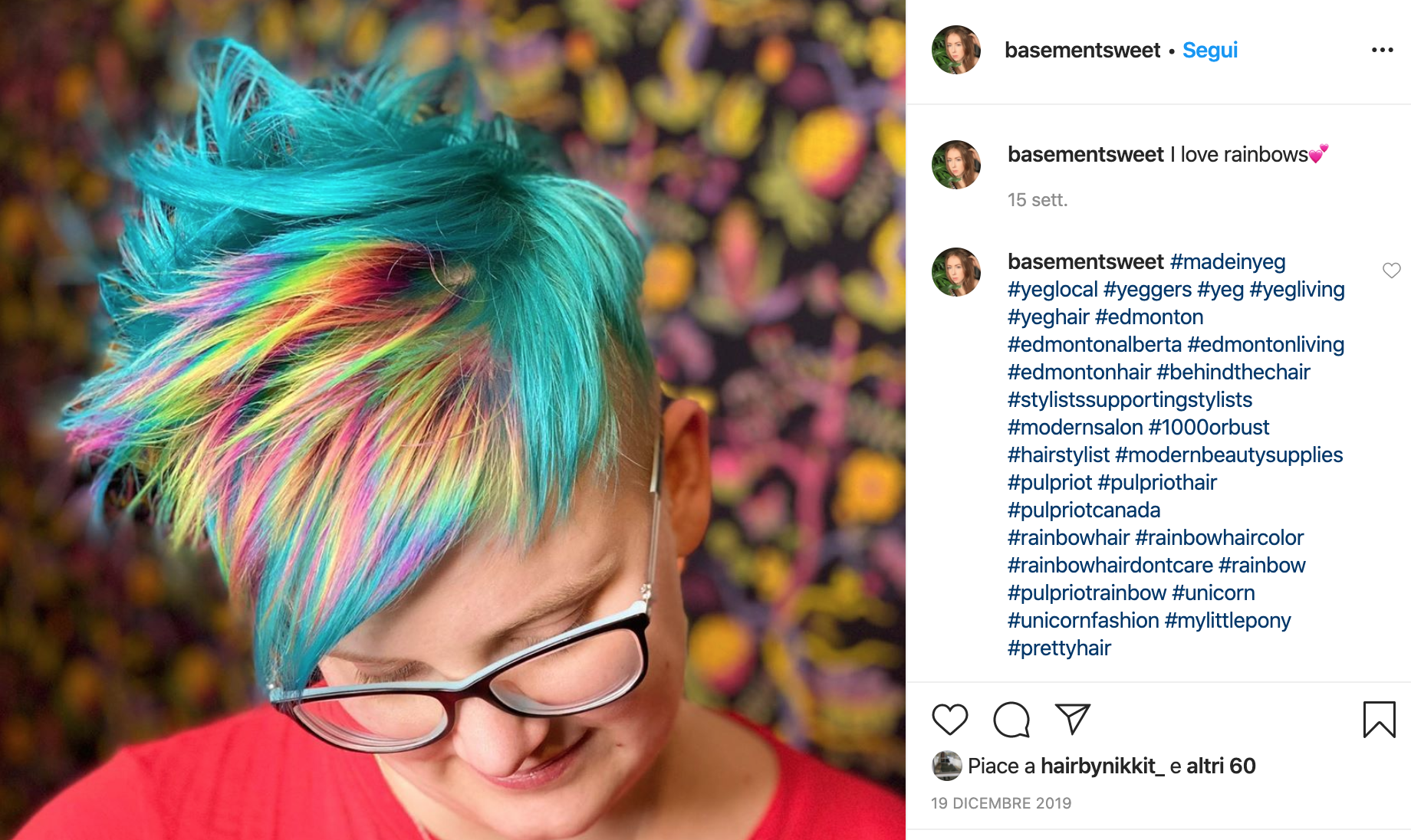 Guardate i lavori di Kristina Cheeseman, la colorista di St. Louis, nel Missouri, che aveva realizzato quel bellissimo colore ispirato all’aurora boreale. Kristina ha raccontato ad Allure di aver proposto a molti dei suoi clienti di provare i rainbow hair… e l’idea è piaciuta molto.