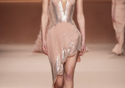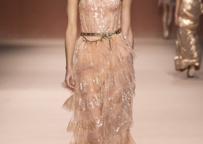 Gli abiti che hanno sfilato in passerella, hanno raccontato l’unicità e l’individualità dell’universo femminile attraverso una palette dai toni tenui e, soprattutto, dalla nuance che da sempre ha contraddistinto il mondo femminile: il rosa, interpretato come espressione di libertà e autenticità.