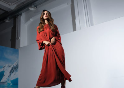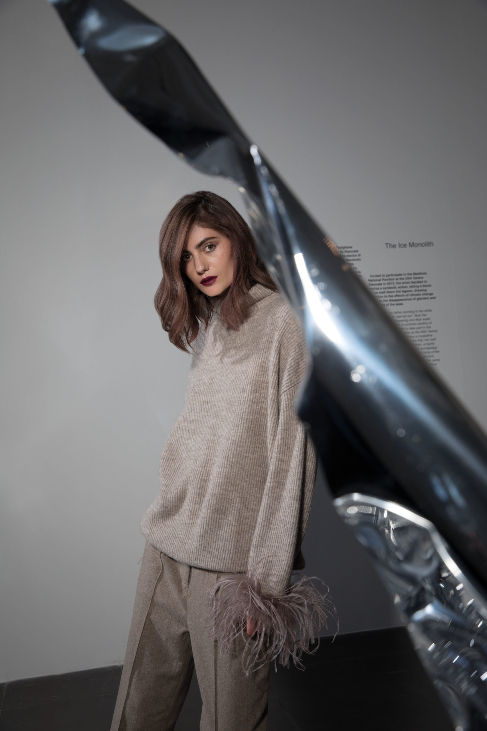 H-eart-H, il titolo di questa stagione, parla di “una collezione divisa in una parte emozionale, ‘Heart’, dove la protagonista utilizza la moda per vivere o rivivere momenti, ambienti e ricordi che possano stimolare delle sensazioni che richiamano alla vita reale. Senza filtri, naked, consapevole della propria forza, ma anche di debolezze e imperfezioni che la rendono unica, originale, frutto di una visione che possa anche prevedere di riproporre in modo attuale qualcosa di già visto o già fatto. Dall’altra parte il pensiero razionale, ‘Earth’, la consapevolezza dei grandi cambiamenti ambientali e sociali del mondo, e il loro impatto sulla bellezza con nuovi canoni inclusivi, fluidità di generi, età e forme. Nasce così il desiderio di afferrare una nuova libertà estetica che permetta di esprimere liberamente e con orgoglio la parte più interiore, non come femminismo militante, ma come vera emancipazione” (Mauro Galzignato).