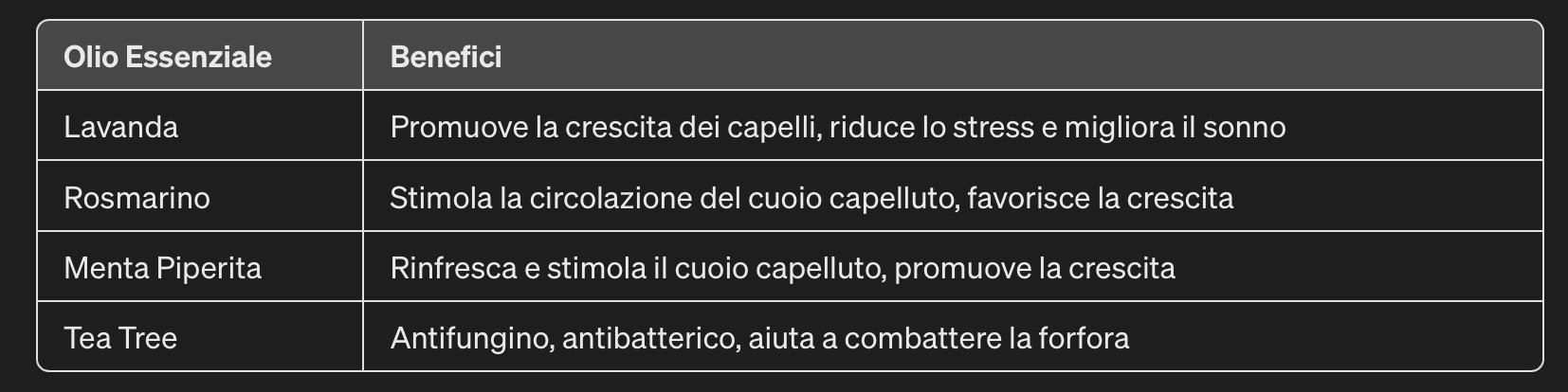 Gli oli essenziali non sono solo fragranze gradevoli; sono composti concentrati estratti da fiori, foglie, radici e altri elementi delle piante che possono avere effetti benefici sui capelli e sul cuoio capelluto. Ecco alcuni degli oli più apprezzati e i loro effetti: